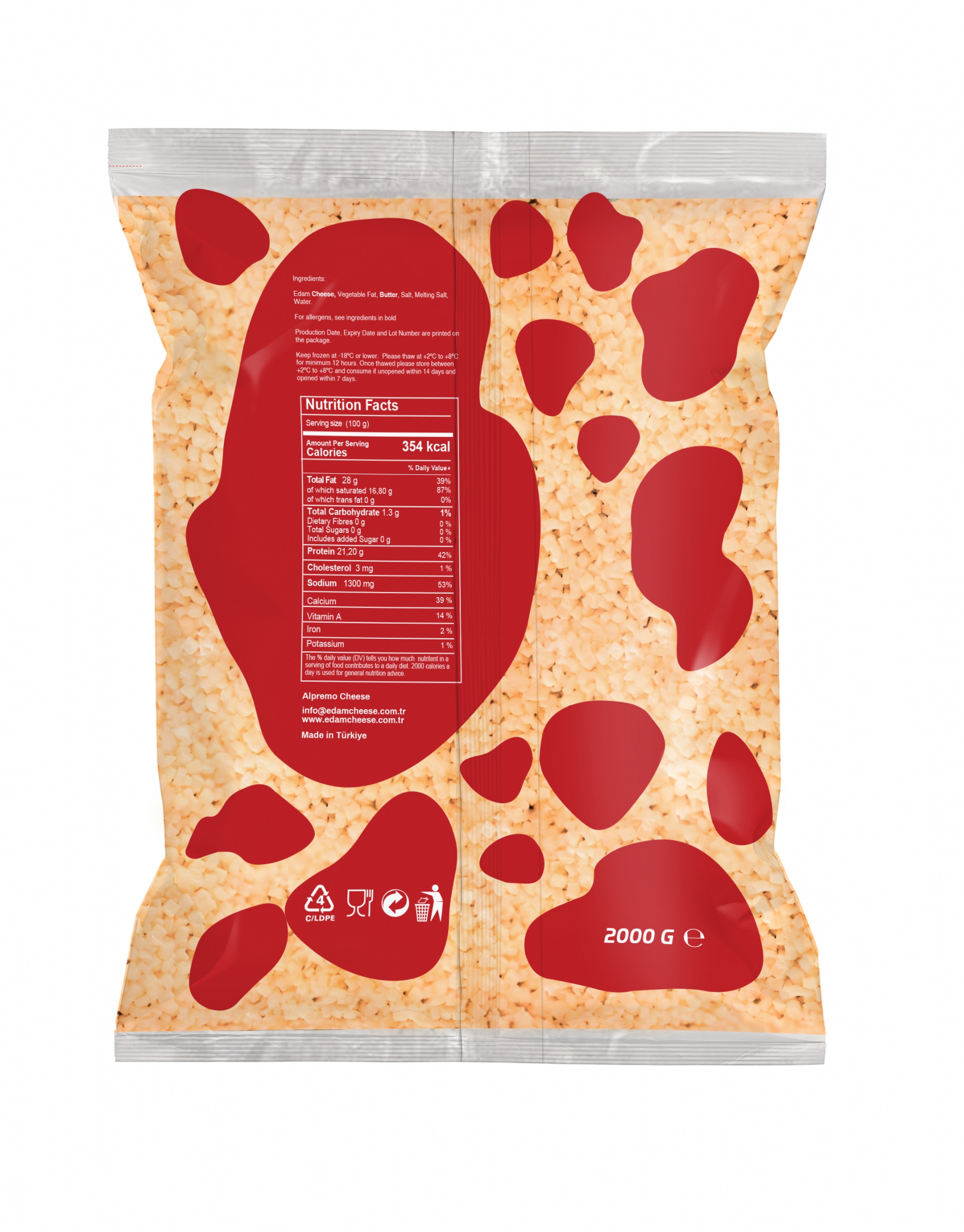 Beside the durable Packaging we are able to supply our Diced Analogue Edam Cheese with a long Shelf Life for our Retail, HoReCa, Wholesale and Industrial Customers.